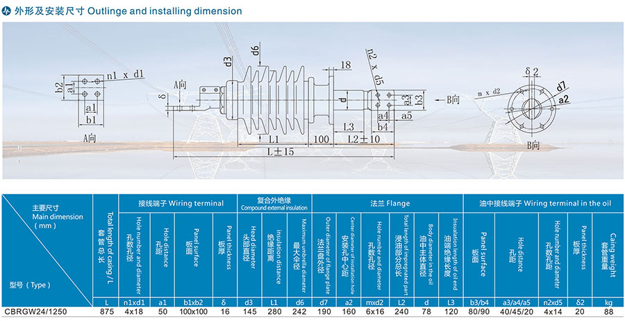 CBRGW-24KV干式電容型變壓器套管