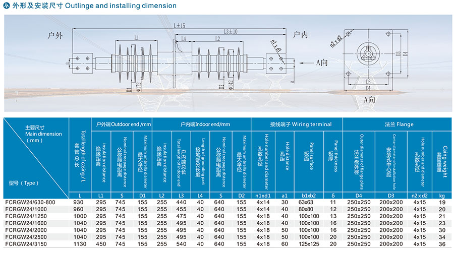 FCRGW-24KV復(fù)合干式電容型穿墻套管