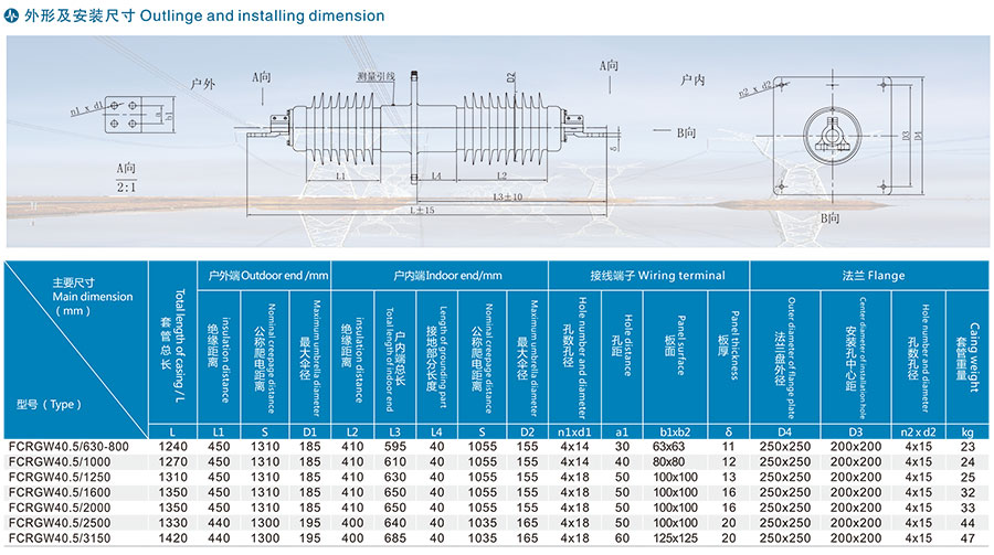 FCRGW-40.5KV復(fù)合干式電容型穿墻套管